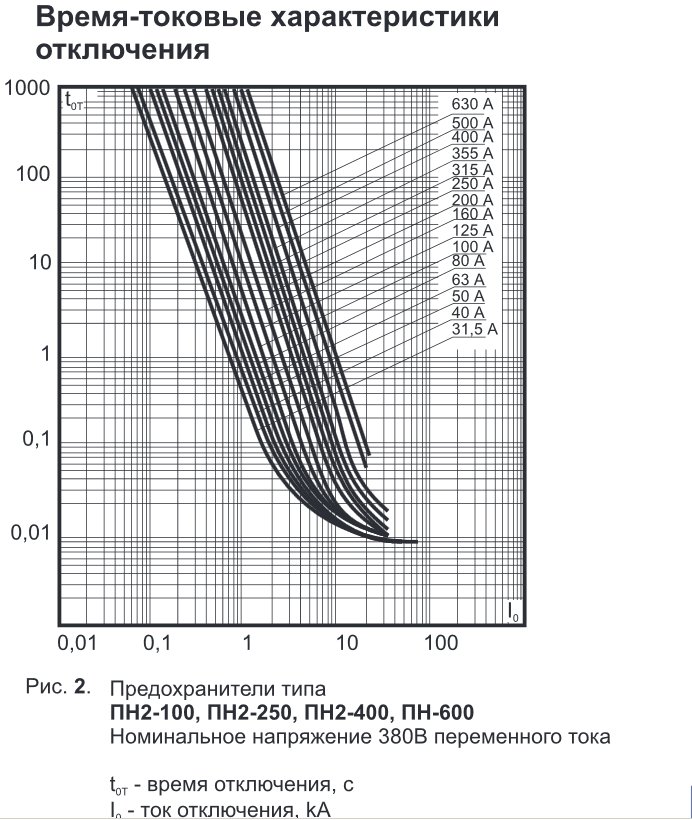 Для визначення часу спрацювання запобіжників я брав їх часострумову характеристику то ПН-2 ні в які рамки не влазить то прийшлось написати що уставка gL/gG