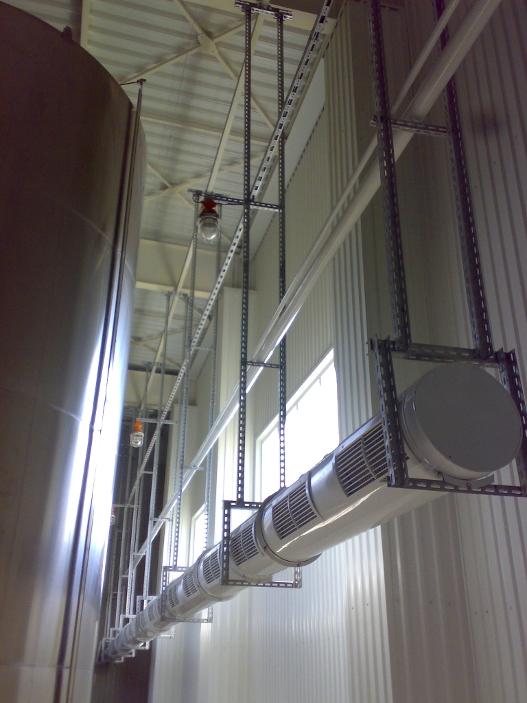 Для крепления лотка шириной 50-100мм можно использовать цепь и перфоленту. Нужно перфоленту изогнуть в форме прямоугольника с выступающими концами вверх и закрепить к цепи болтом М5х20, как ранее было сказано Сугор. Этого решения нет в типовом альбоме, но оно часто используется на практике. Допустимую нагрузку определите по самому слабому звену в системе, например Монтажная лента (код CM610050) - нагрузка 75кг, а нагрузка на Цепь (код CM610010) - нагрузка 55кг.