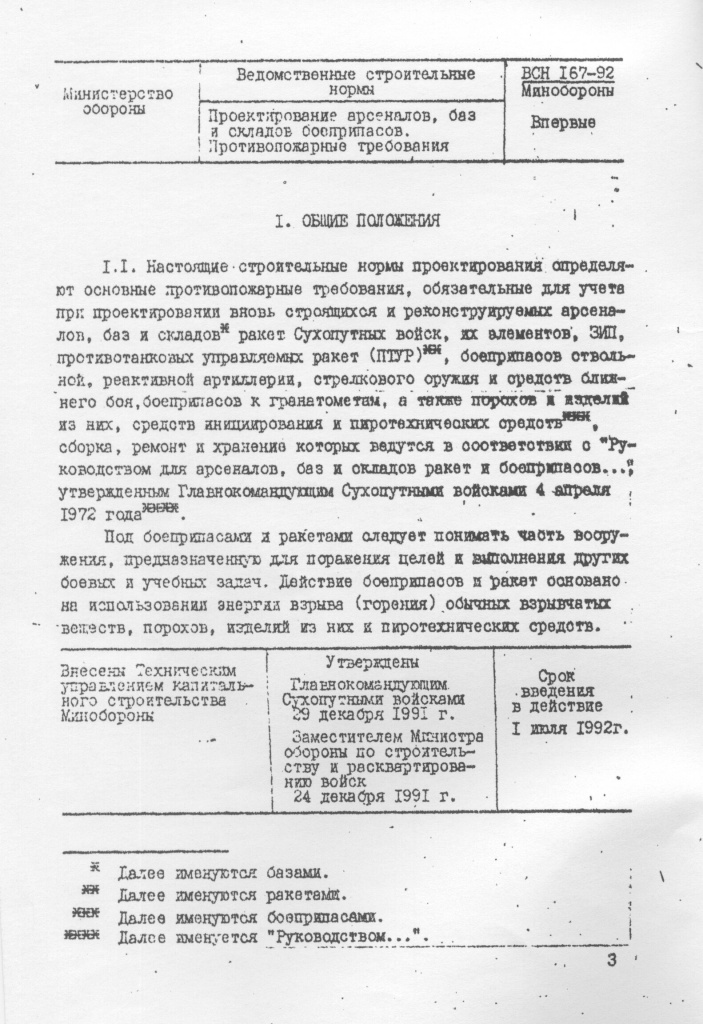 ВСН 167-92 "Проектирование арсеналов, баз и складов боеприпасов. Противопожарные требования"