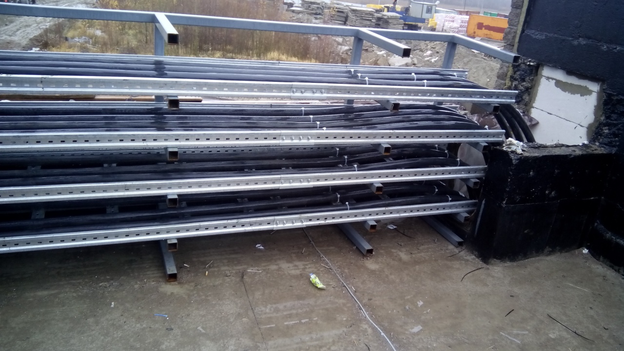 Прокладка лестничных лотков под вводные кабели на ВРУ жилых секций (опуск в пристроенную ТП).