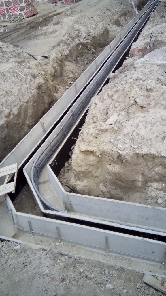 прокладка вводных кабелей от ГРЩ на ВРУ жилых секций ы бетонных лотках