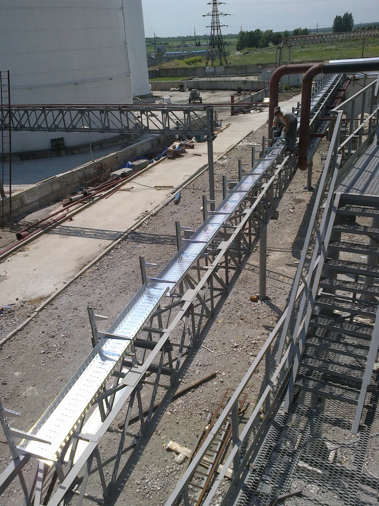 В альбоме приведен в хронологическом порядке монтаж лотков и кабелей на маслоэкстракционном заводе. В лотках прокладывался кабель АВВГ 5х120 мм кв. (за расстояние между кабелями не ругайте-это ПРОЕКТНОЕ решение и Пожелание Заказчика!).