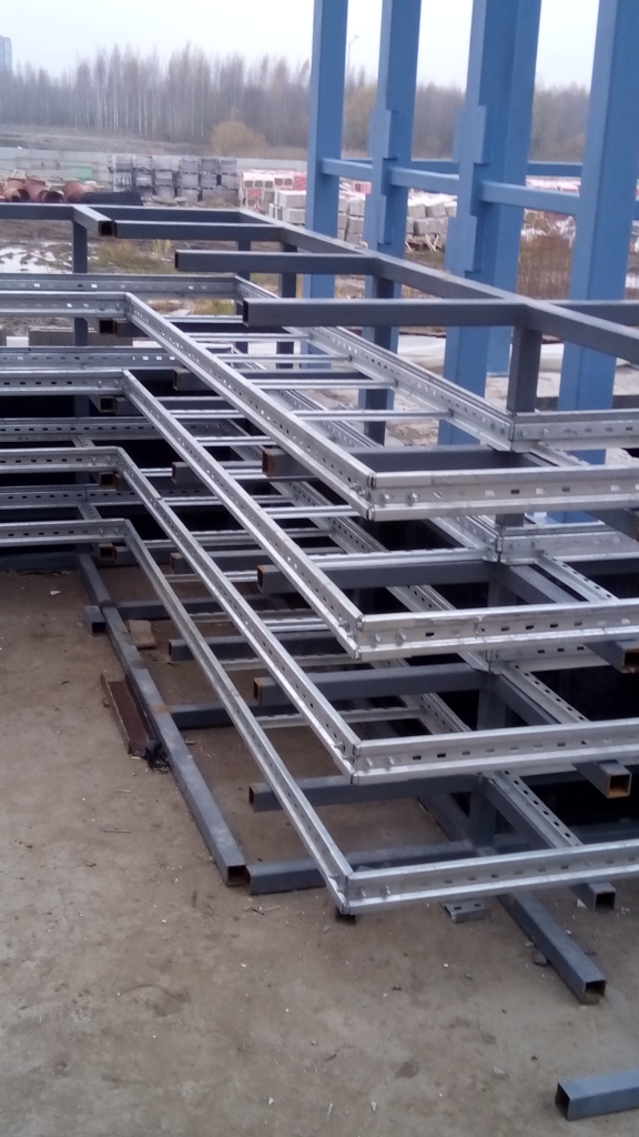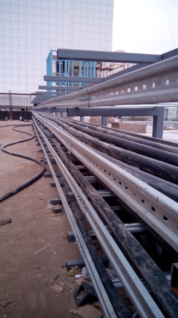 Прокладка лестничных лотков под вводные кабели на ВРУ жилых секций