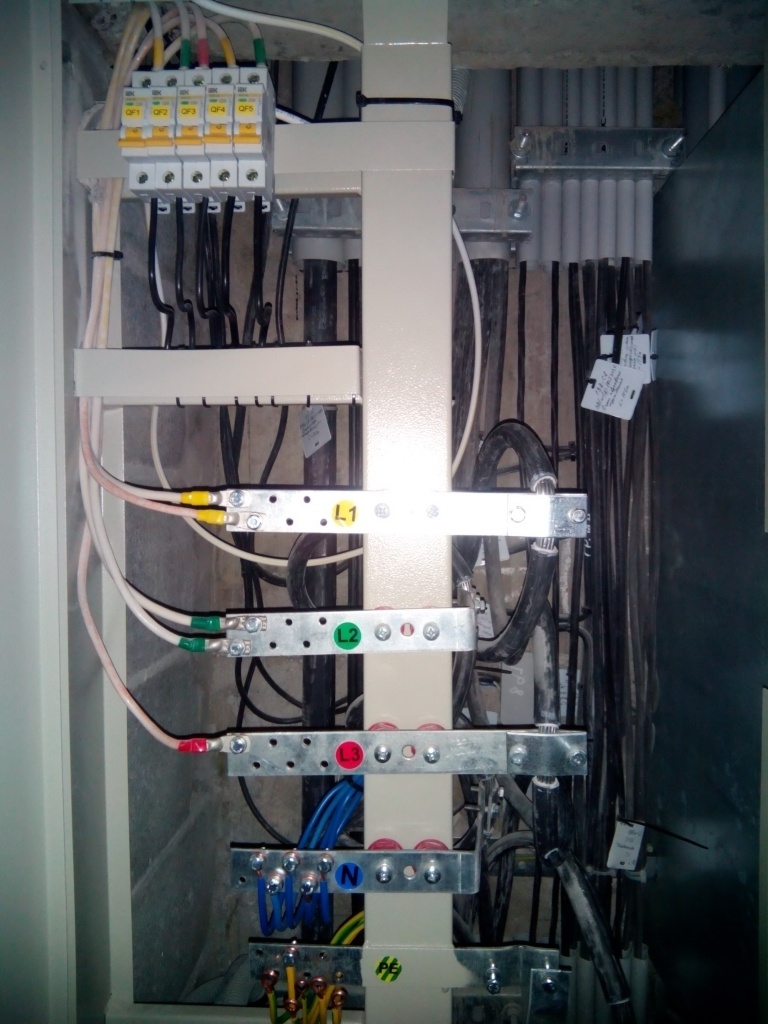 На моих фото нет фальшпанели, которая эти шины потом закрывает (она снята для фото!)! Это и могло не понравиться облэнерго.
